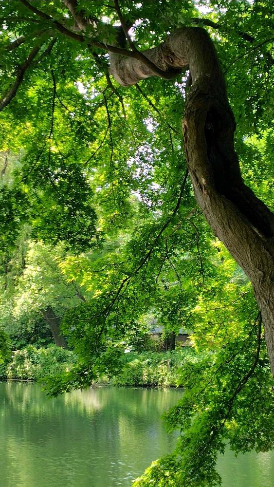 湖面に映り込む新緑 気持ち癒されます。👍🎶