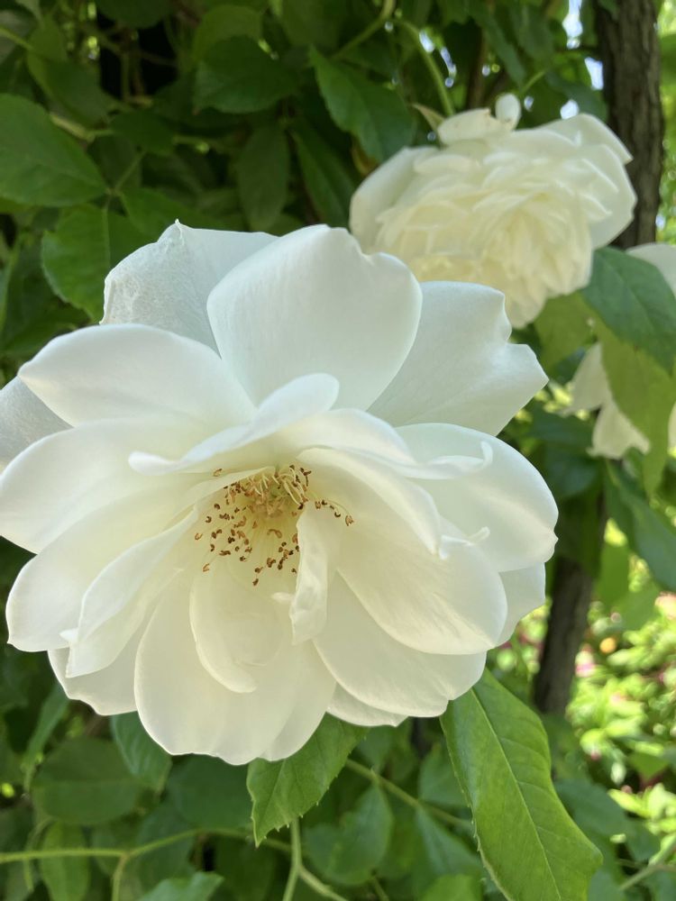 白い花びらがハラハラと落ちる散り際も美しいバラです