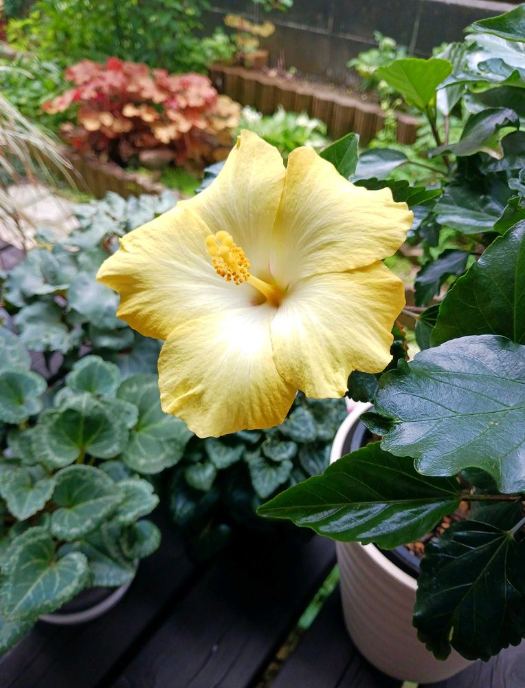 冬越ししたハイビスカス、アイスレモンちゃんが早くも1輪開花🙌ワーイ(5/15)