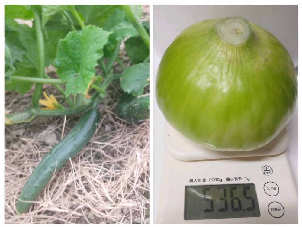 4枚目 自宅畑のキュウリと収穫したタマネギ計測結果