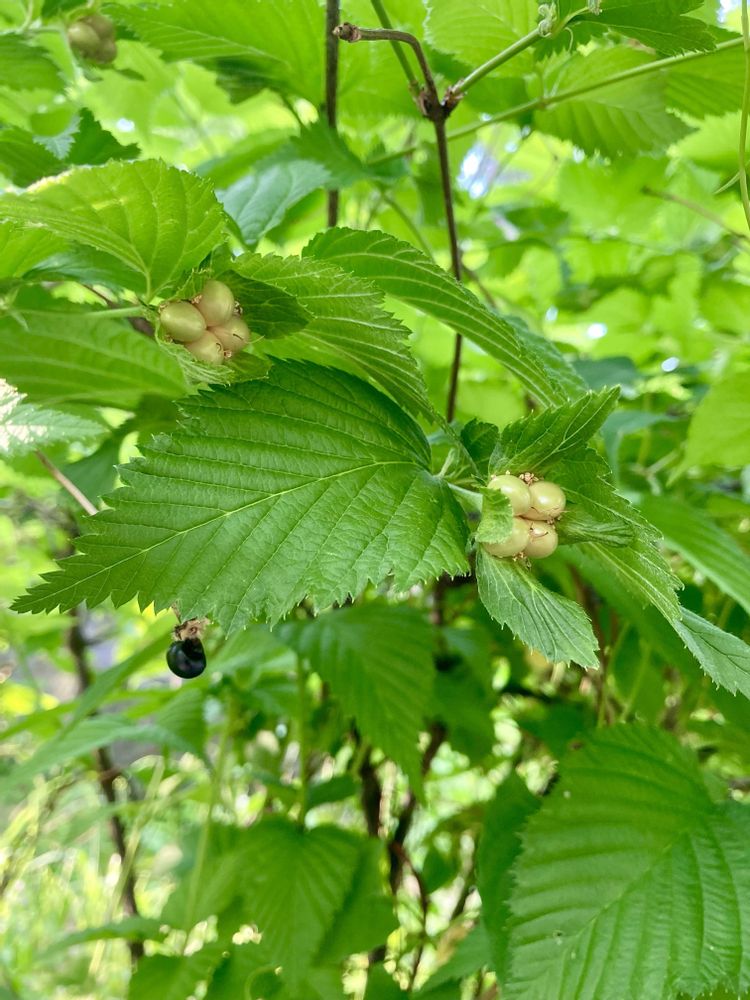 今朝、日比谷公園を歩いていたら「シロヤマブキ(白山吹)」の実がなっていた。