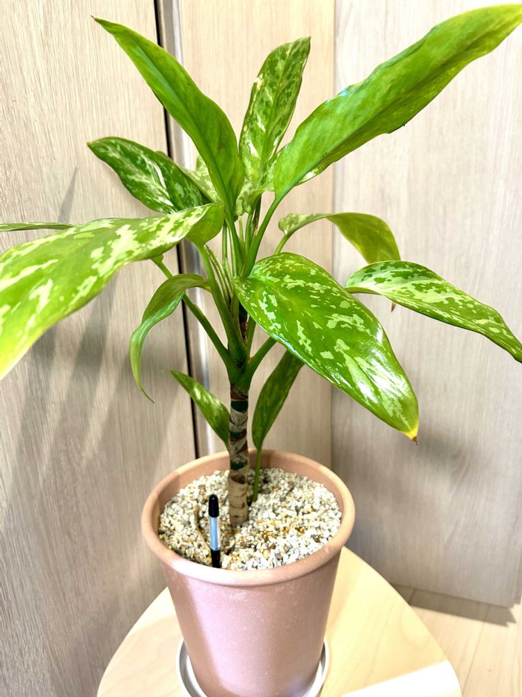 育成記録🪴アグラオネマ😊ブリリアントトリカラー🩷カティーシーはなかなか出会わないけどいつもレオンを思い浮かべてます😊鉢も素焼き風にした😊