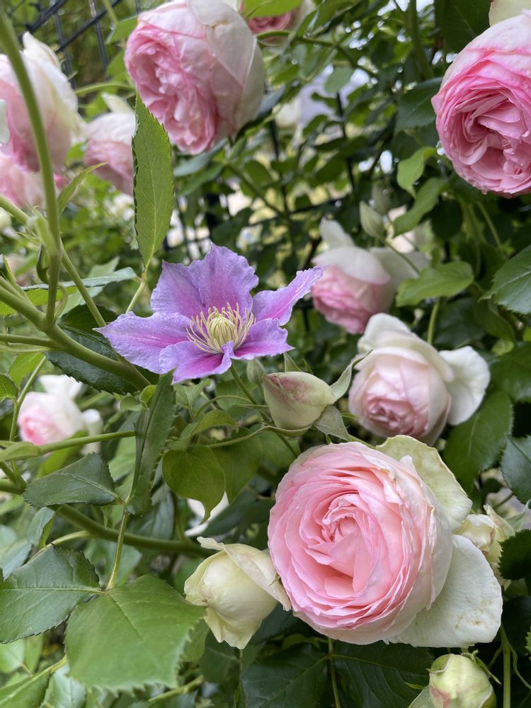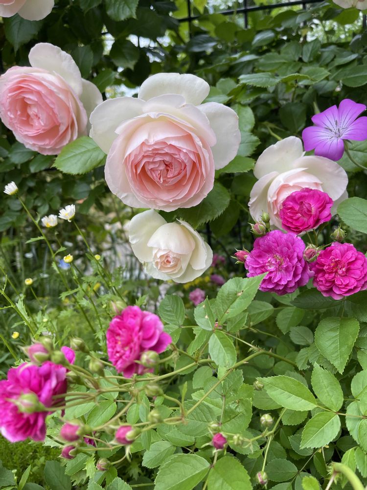 我が家の庭はピンク多めで甘すぎるんですが。このアイスバーグとフミナちゃんの渋々コンビも良きー♡
