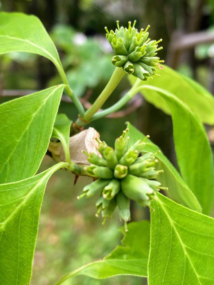 今迄 気付かなかった白木蓮の種。秋には赤くなるみたい😅