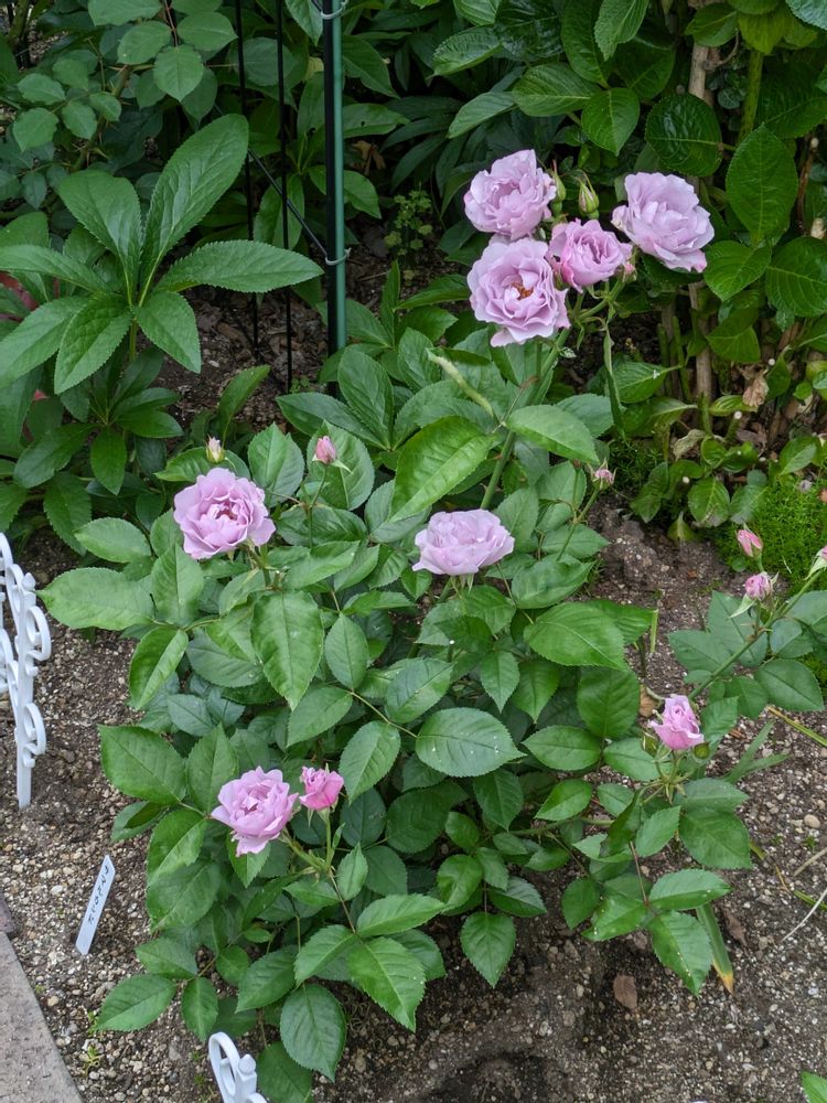 一番花の後、お休みをする子も居れば、次々に蕾をつけて咲く子も居て、紫陽花と良いコラボになってます。