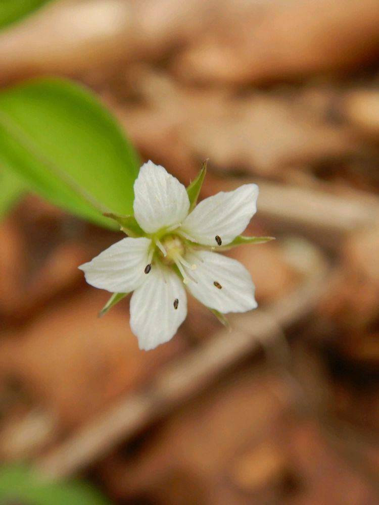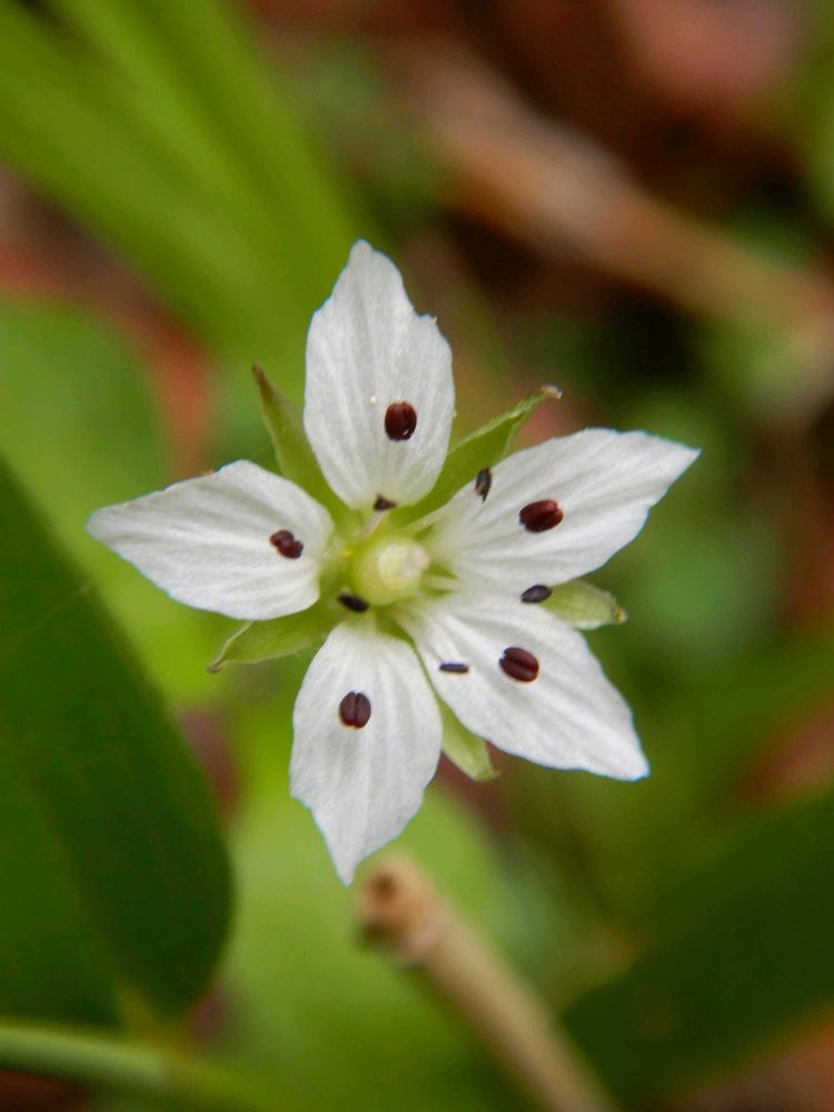 これはワチガイソウ雄しべがアクセントのように花びらの上に重なって見えます。(2枚目画像見て下さい😊)小さな山野草達が足元で咲いていました。🤗🐶✌️