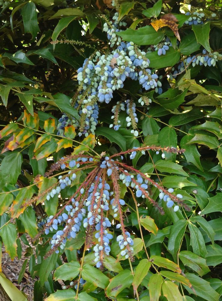 ブルーの宝石がたくさん👀😮 花は黄色だったけど、実は青いのね🤩。1週間前に撮ったヒイラギナンテンです🙌