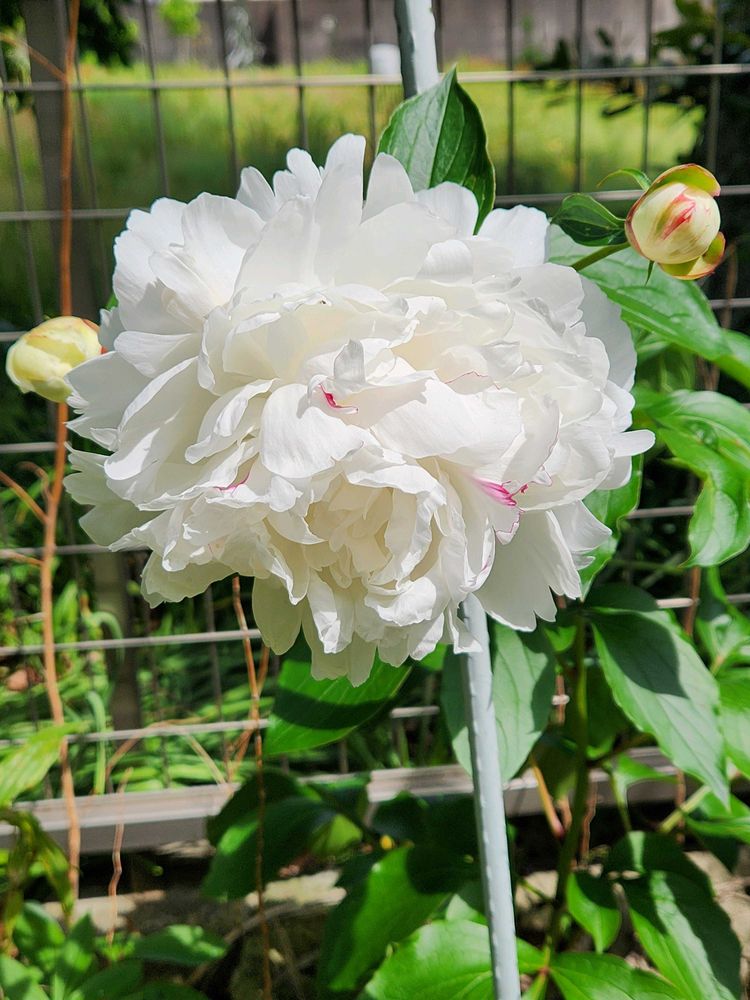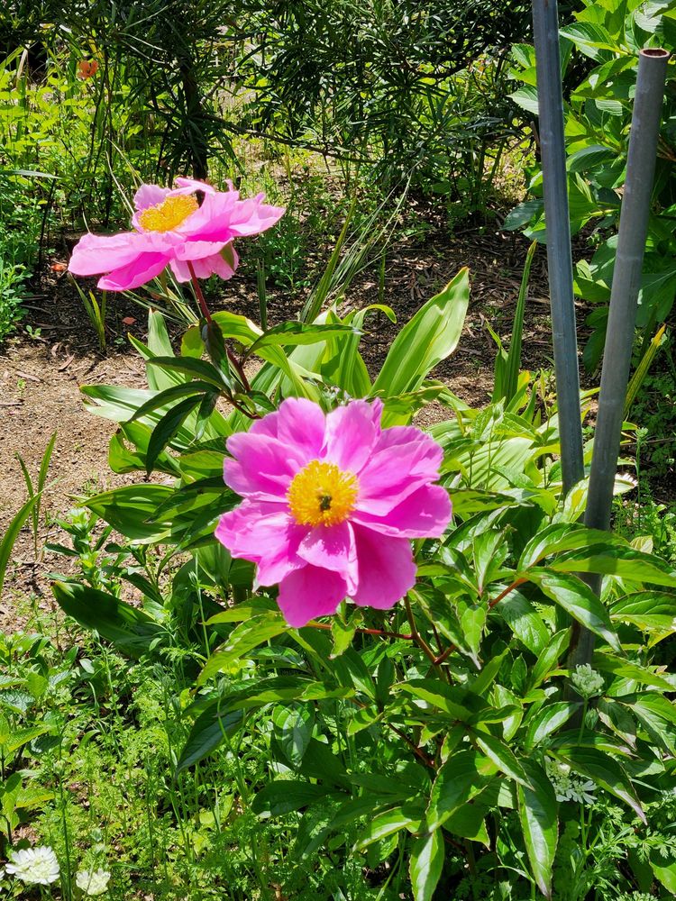 ウチにも同じ色ばかりのシャクヤクですが、庭に咲いています…だいぶお花が重いようで、かわいそう〜