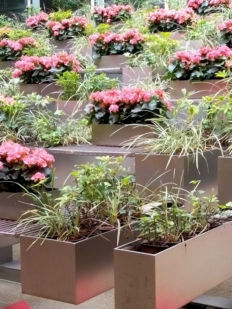 ここの段になってるお花の所綺麗ですよねー私もたまに通ると立ち止まりますよー