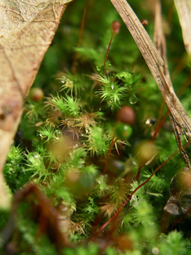 一緒に写っているゼニゴケの傘がお祭りの纒みたい!