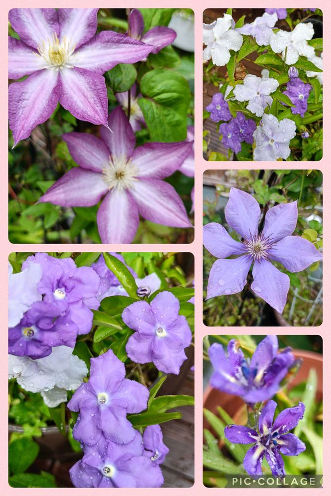 なので今日咲いている紫色のお花たちとコラボコラージュで華やかにしてみました😆