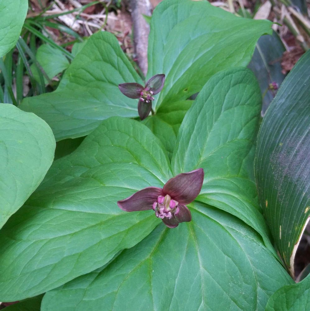 先に投稿したキクザキイチゲの橫の林の中にはエンレイソウも咲いていました❗️