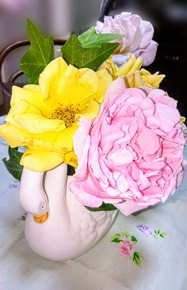 白鳥さんが薔薇で飾られ、うっとりしているように見えました🦢♡👍✨