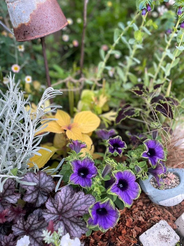 主役はゲブラさんのペチュニア真輝です💜💚周りはカラーリーフで固めローメンテで🤣