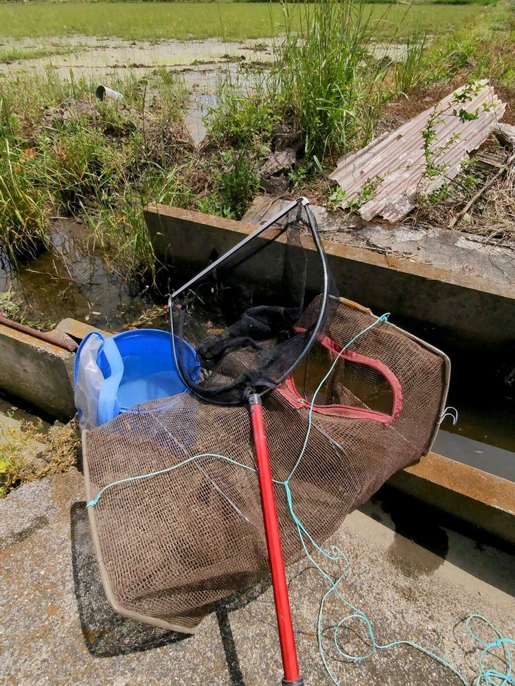今の時期はコイやフナの稚魚、あとはカダヤシなんかは捕れます。水門閉じたら勝負です!お楽しみに(笑)