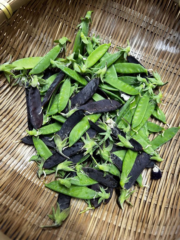 また夫が昨日採ってきたエンドウ🫛に感動してます。