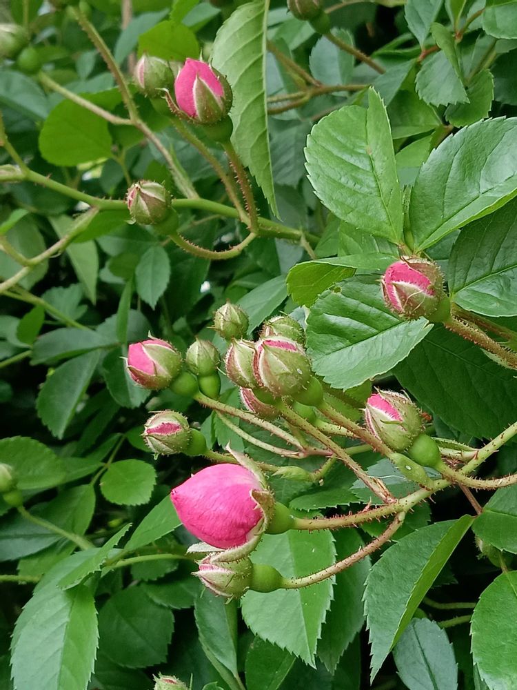 ①②お庭のキングローズ、昨年は蕾を全部、虫達にやられて…今年はしっかりと消毒したので、蕾が沢山〜開花が楽しみなのですが、夕方頃から雨の予報…☔😅