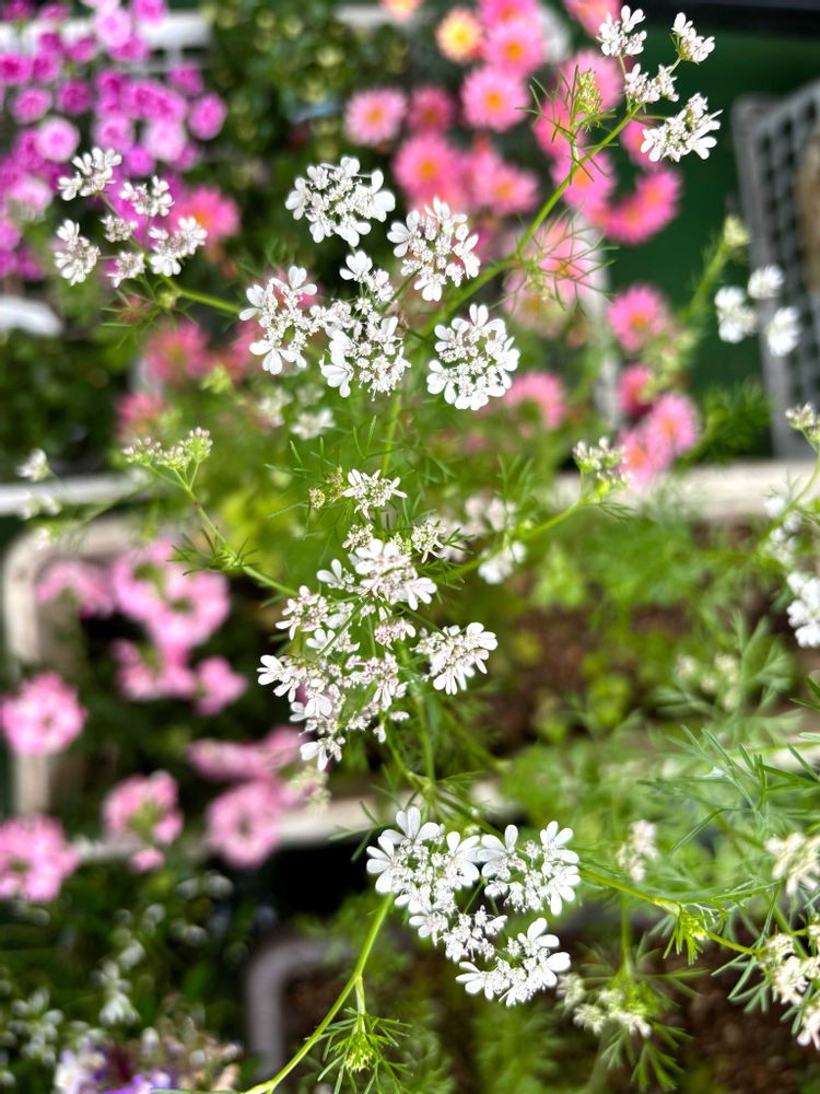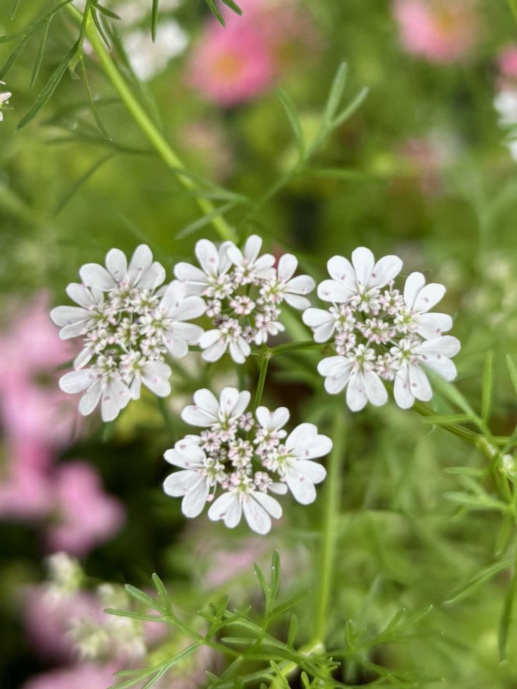 人参のお花もこのように可愛らしいですよね💓このパクチー、このまま放置して自然発生的に増えてくれるといいなぁ、と😆