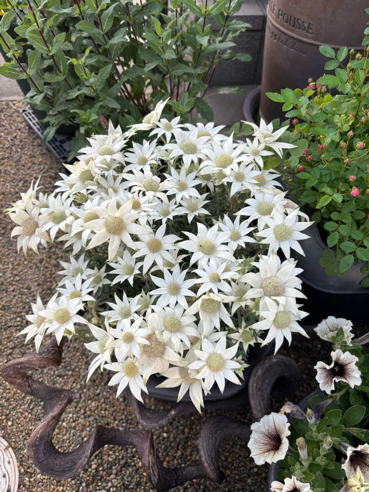 ひろさんのルージュ.ピエール.ド.ロンサール,フランネルフラワー リトルエンジェル,おうち園芸の投稿画像