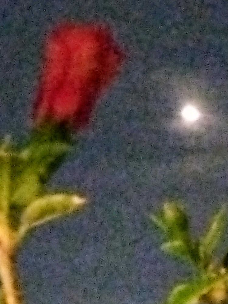 昨日薄っすらと消え入りそうな月がハイビスカスの向こうに霞んで見えました
