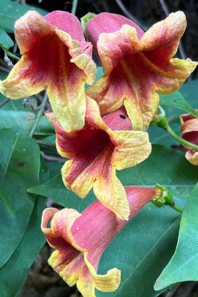 カレーカズラ🍛は高速道路の橋脚に絡まっていて とてもグロテスク😱しかも臭〜い💦青臭いカレーの香りがするのよね🤣🤣