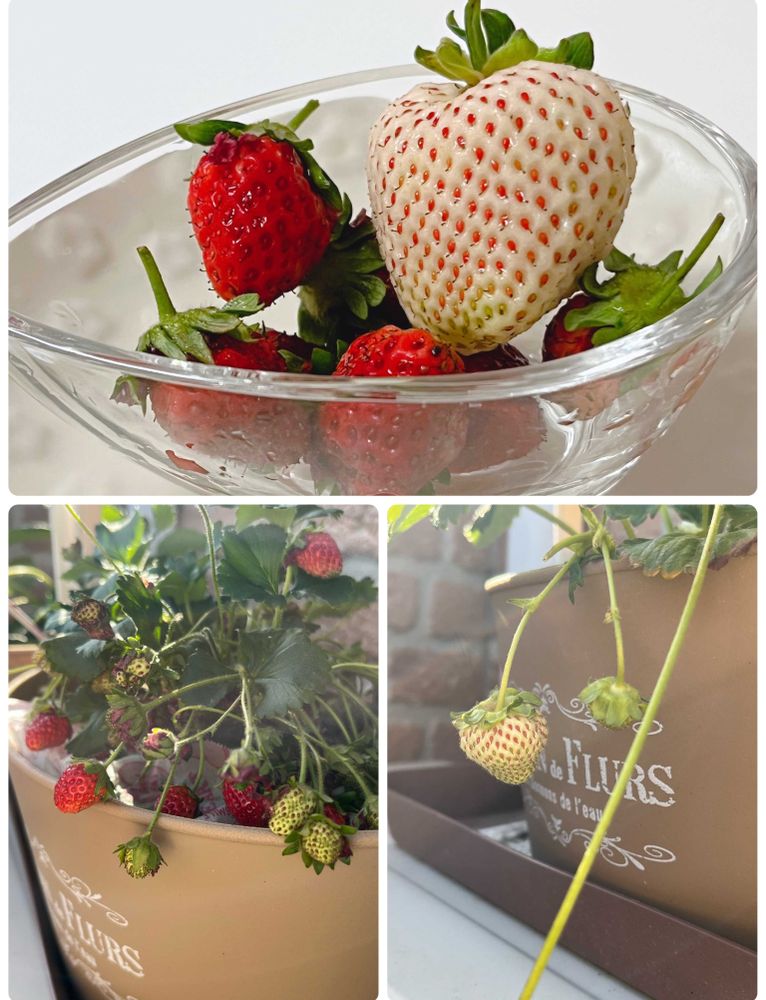 イチゴちゃん、もぎたて食べれてビタミンC摂れるね〜🍓