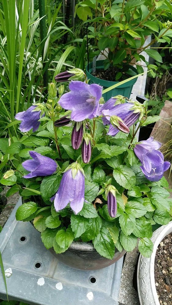 今年の一月ポットに地上部が無く土だけの状態の見切り品で連れてきたカンパニュラ(マジェスティックブルー)が咲き始めました。