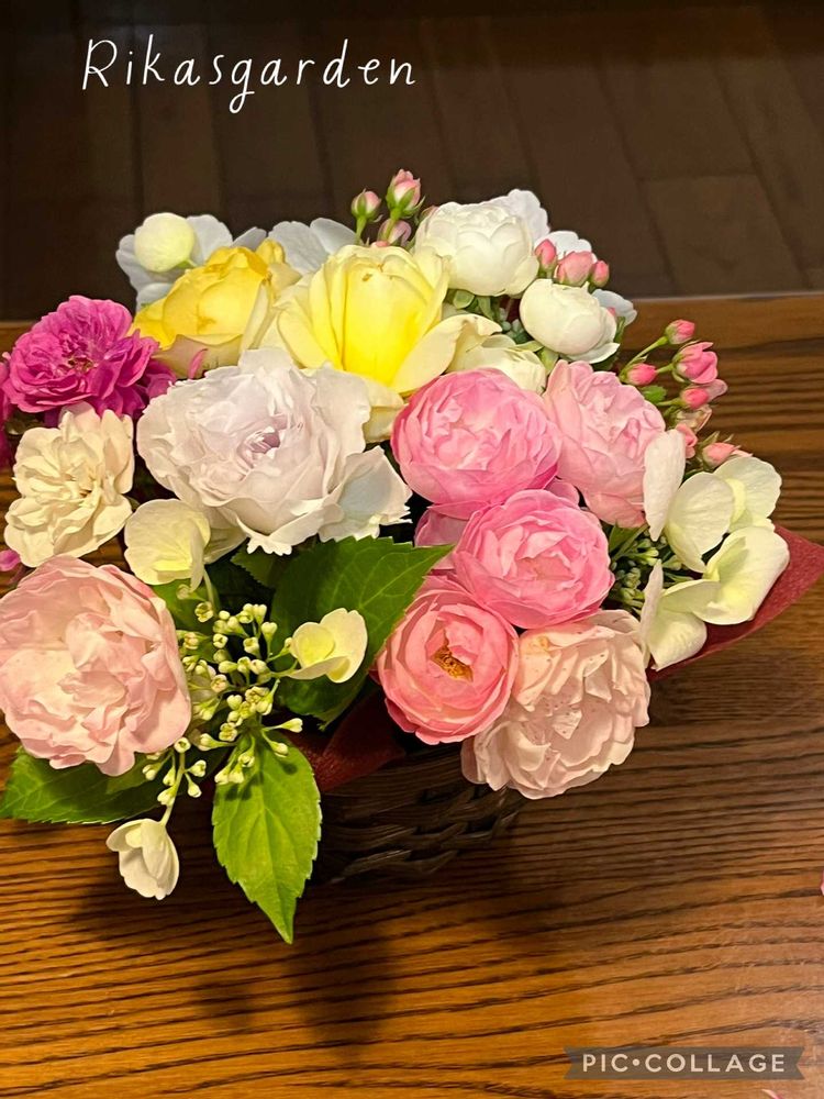 ③小さいバラで作ったアレンジ。カットしながら急いで作ったので、ちょっとバランスが‥😅