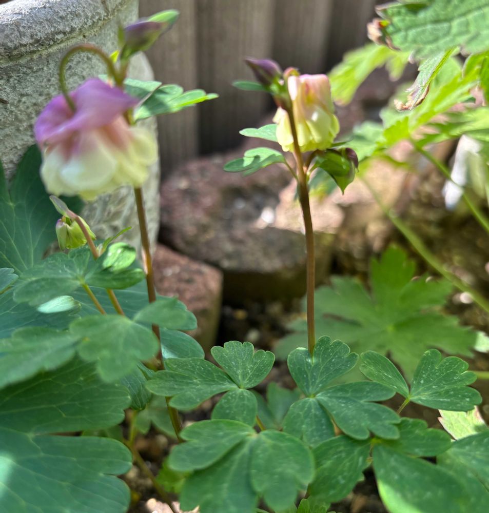 オダマキ、あちこちで溢れ種もぐんぐん育ってオダマキ下段に😂