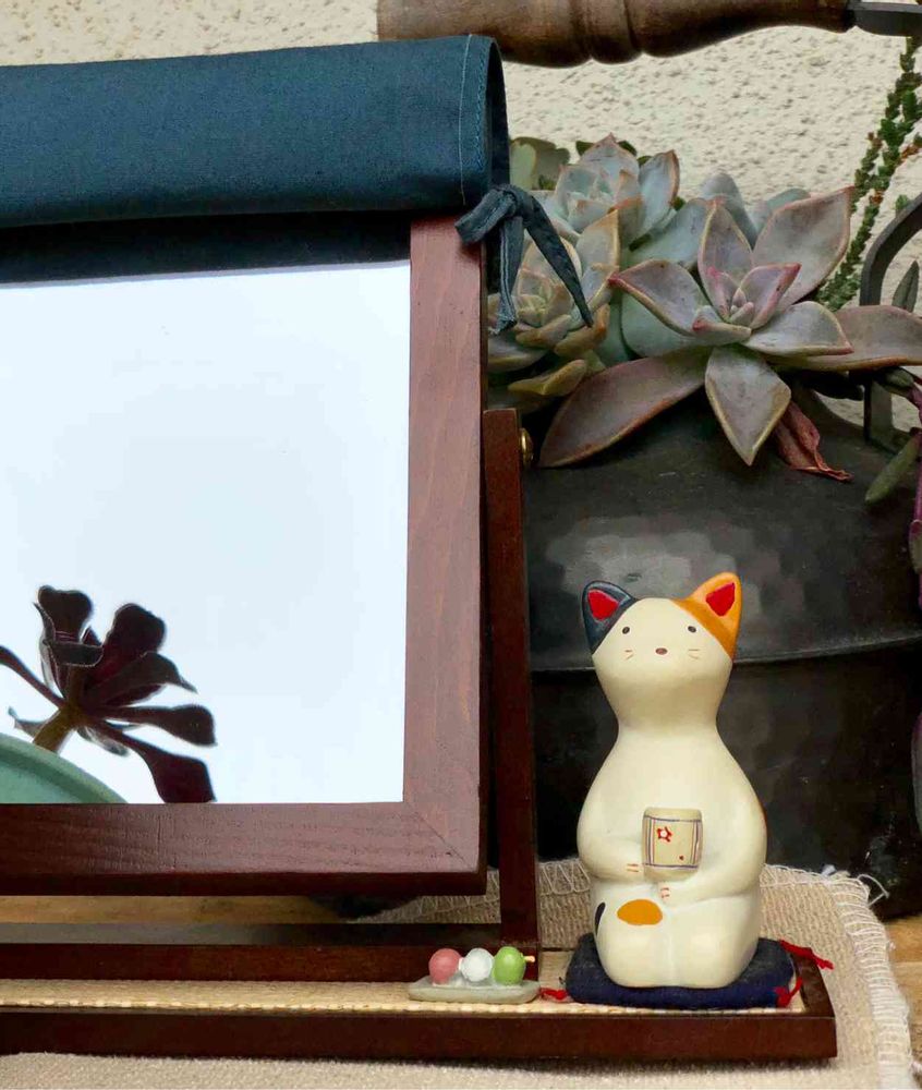 雑貨好きの私だけどこの和の雰囲気があるネコちゃん付き鏡台…( ⸝⸝⸝¯ ¯⸝⸝⸝ )可愛いー❤️