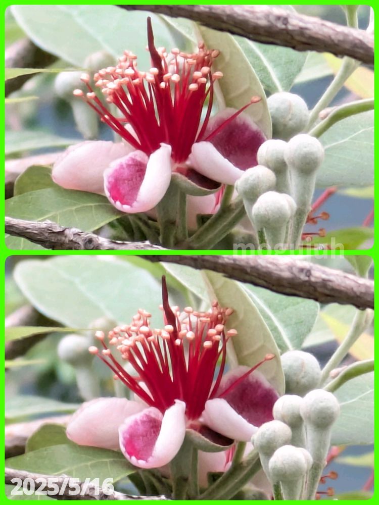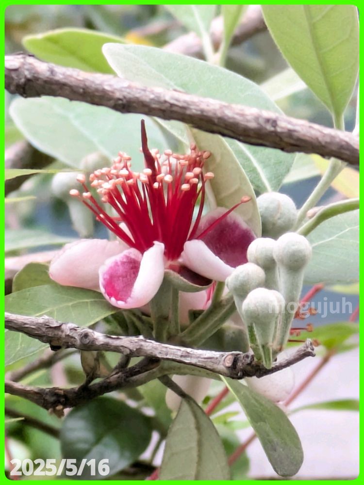 フェイジョアが1輪、咲き始めましたよ。