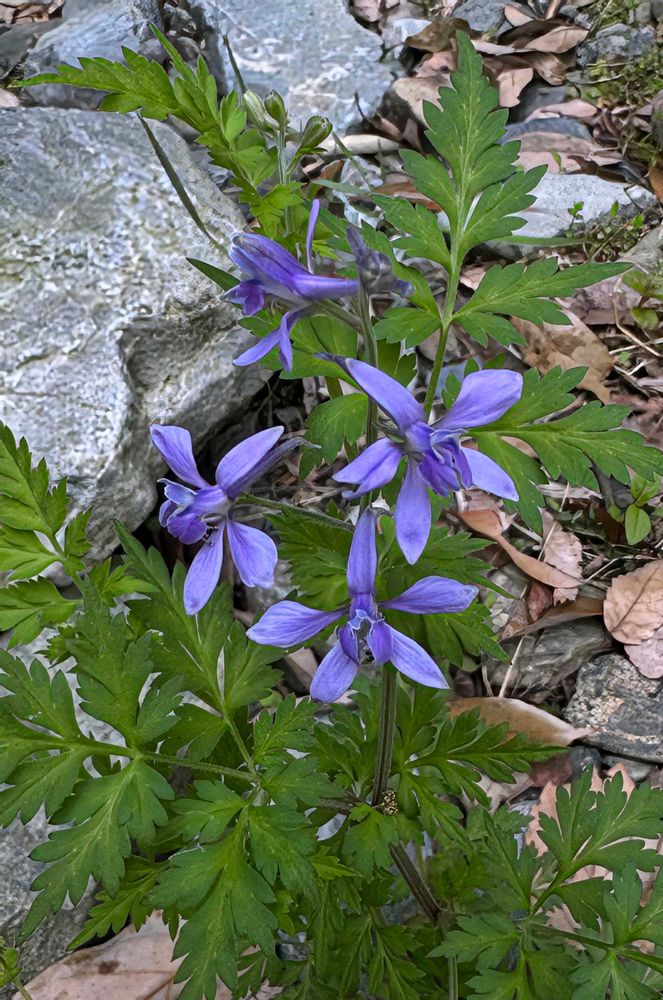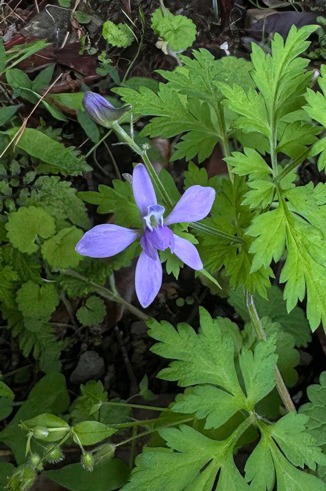 高尾山にセリバヒエンソウの花があちらこちらに沢山咲いていて、美しい紫色に癒やされます💜🌿