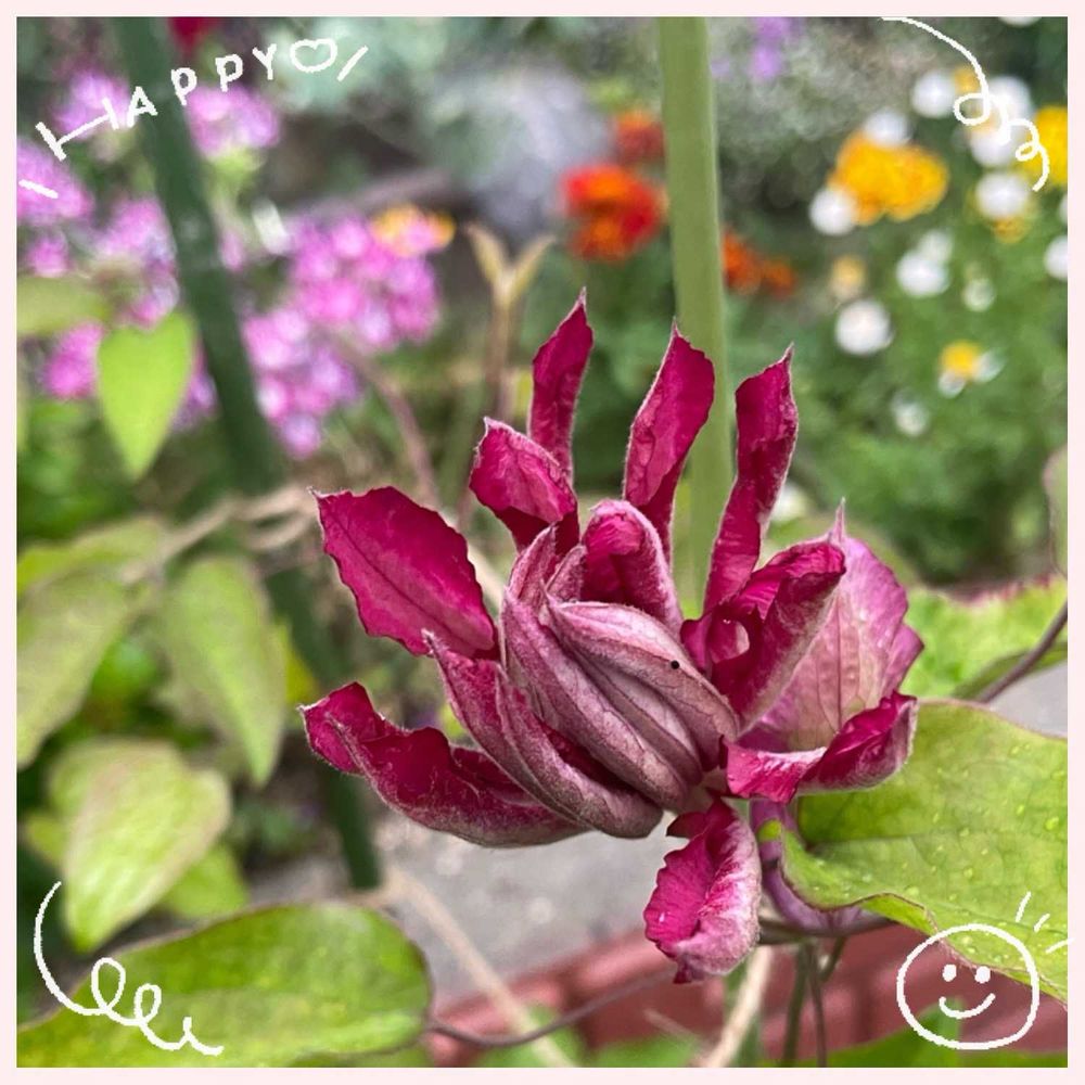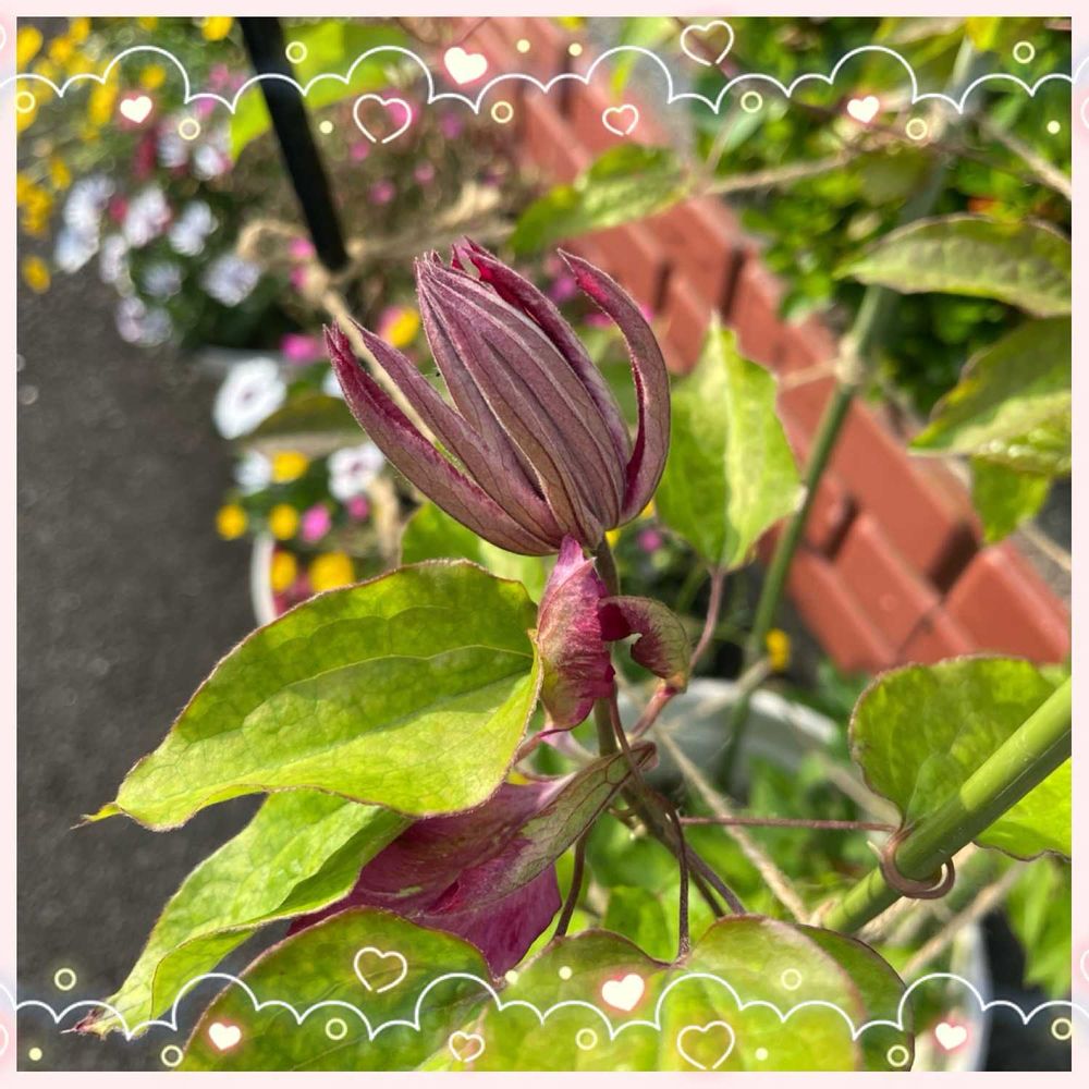 クレマチス花炎🔥の花は、赤紫色の花なんですね〜炎の様な素敵な花ですね〜