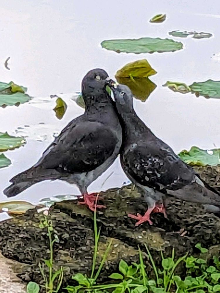 鳩さんは、写真を見ただけだと、チューしてるように見える〜♡