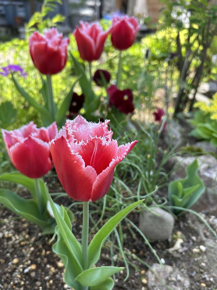 いよいよチューリップも最後を迎えようとしています。庭に春を彩ってくれて感謝。入れ替わりにバラのツボミが大きくなってきました😊