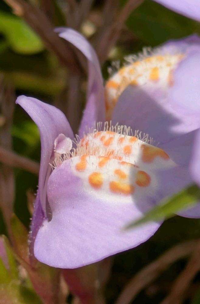 上唇は2裂、下唇は3裂で隆起した斑紋があって、毛が生えている💜