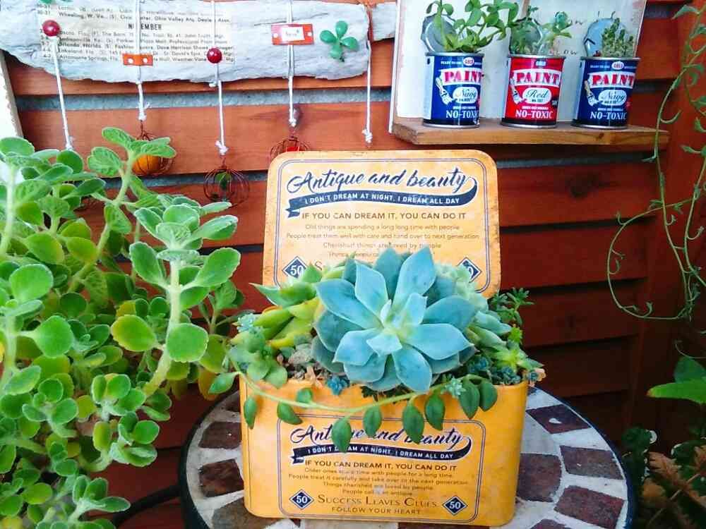 セリアの缶の寄せ植え頑張ってくれています❤
