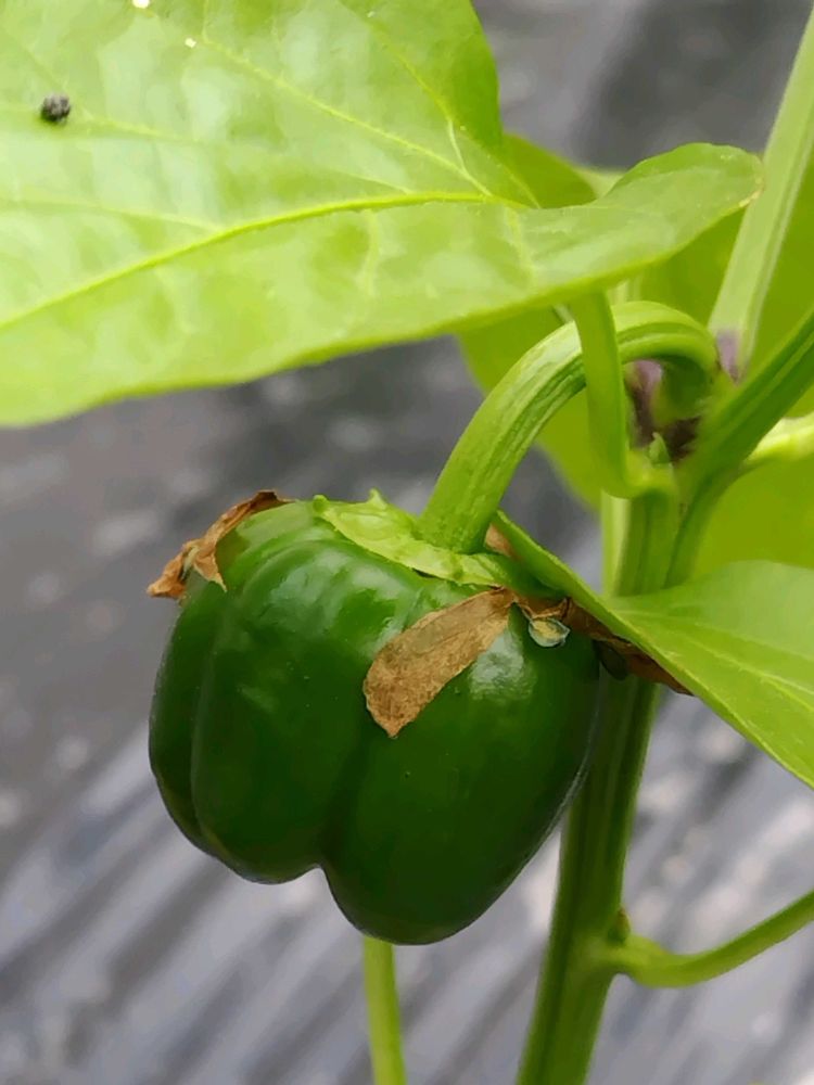 ③④黄パプリカのまだ青い実とお花💛🫑💮