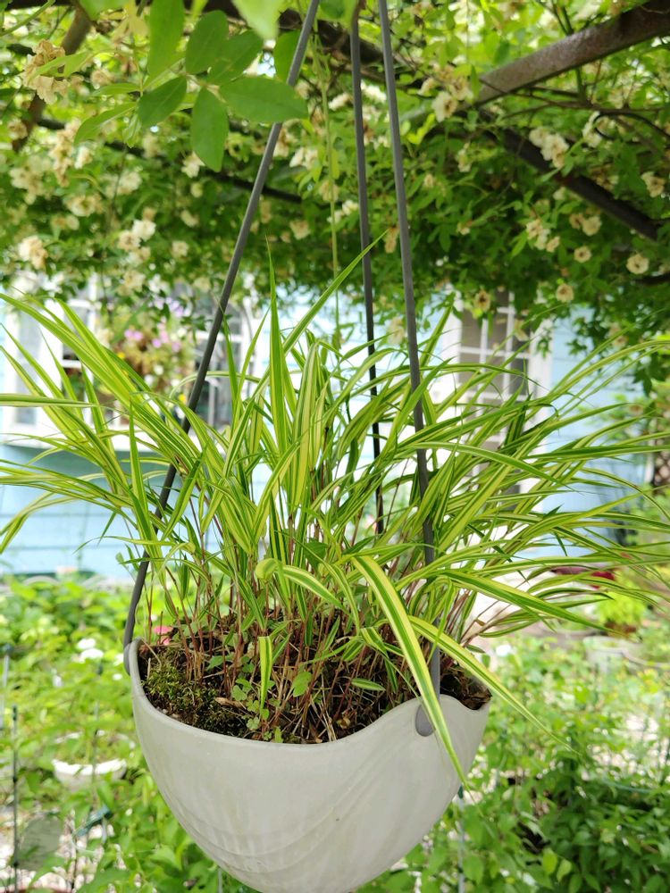 吊り下げ部分ぎ壊れていたので、鉢を取り替えて吊り下げてみました🤗