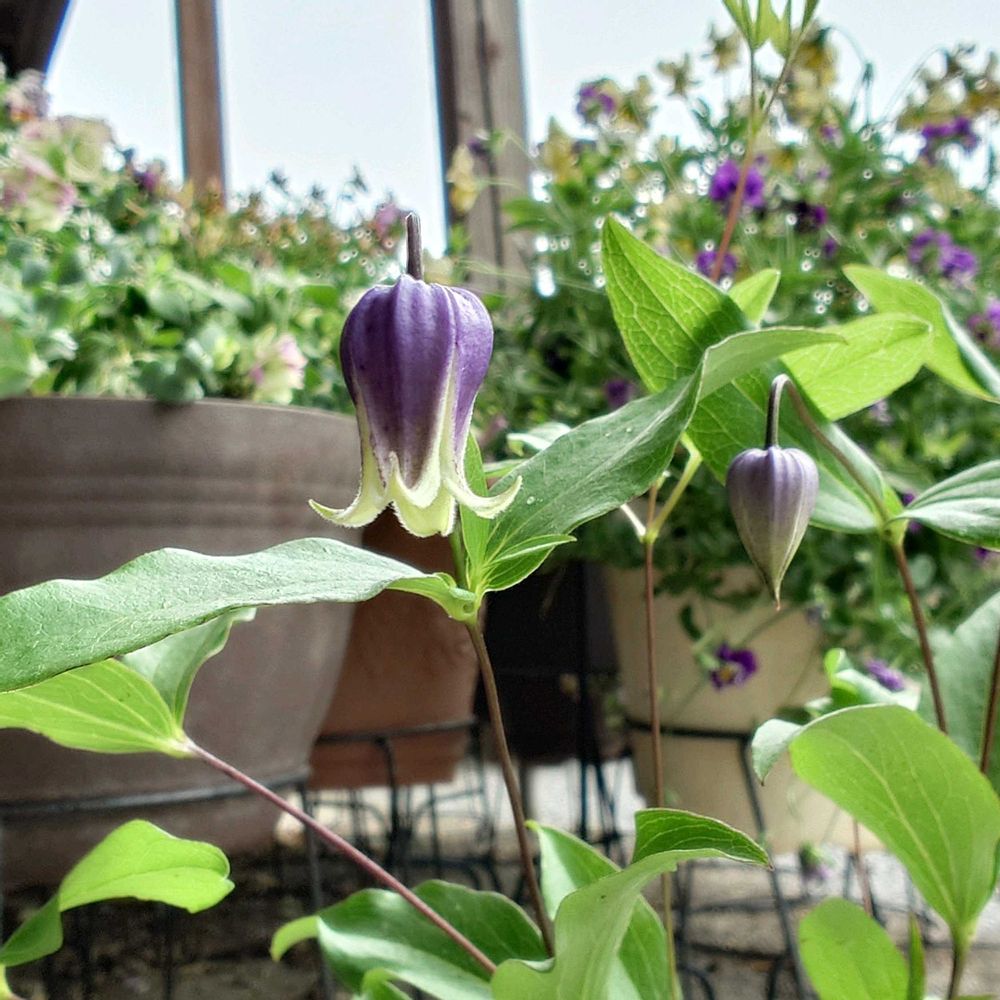 青紫で中が白い壺型の可愛いクレマチス💙