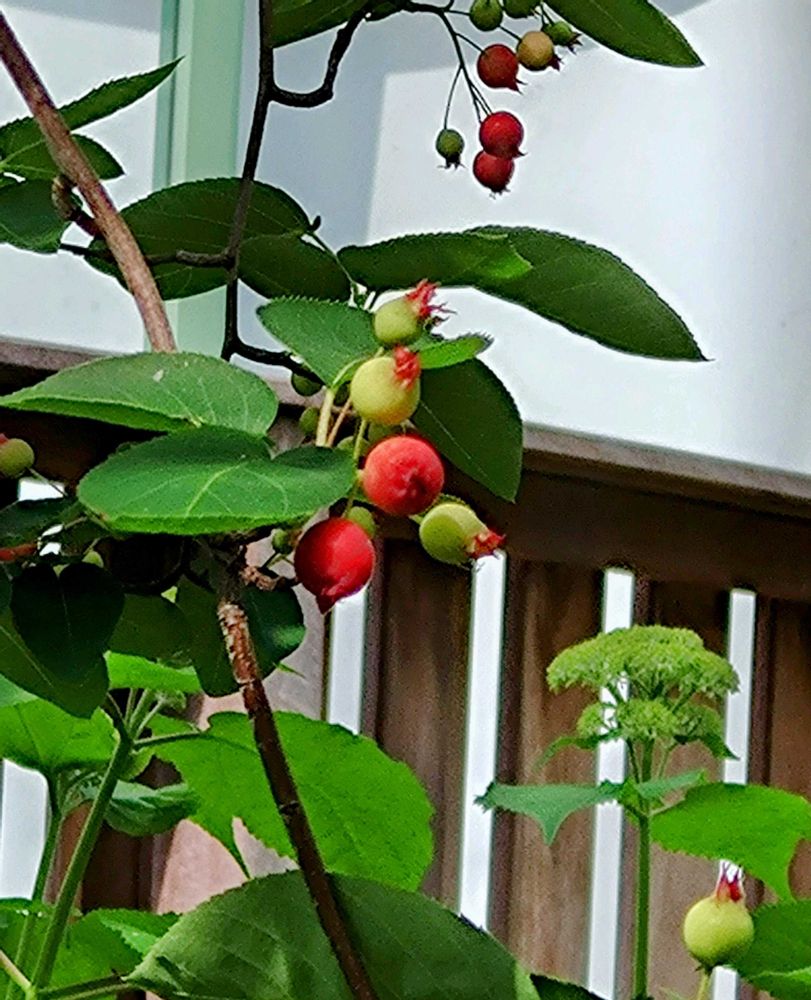 ④ジューンベリーが色づいてきました。花は見落としているので、実はウォッチ物件リストに入れてました😂