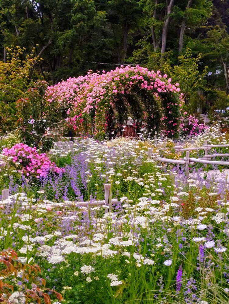 薔薇のトンネルのアーチが見事にびっしり咲いて別世界の景色で癒やされました🥰