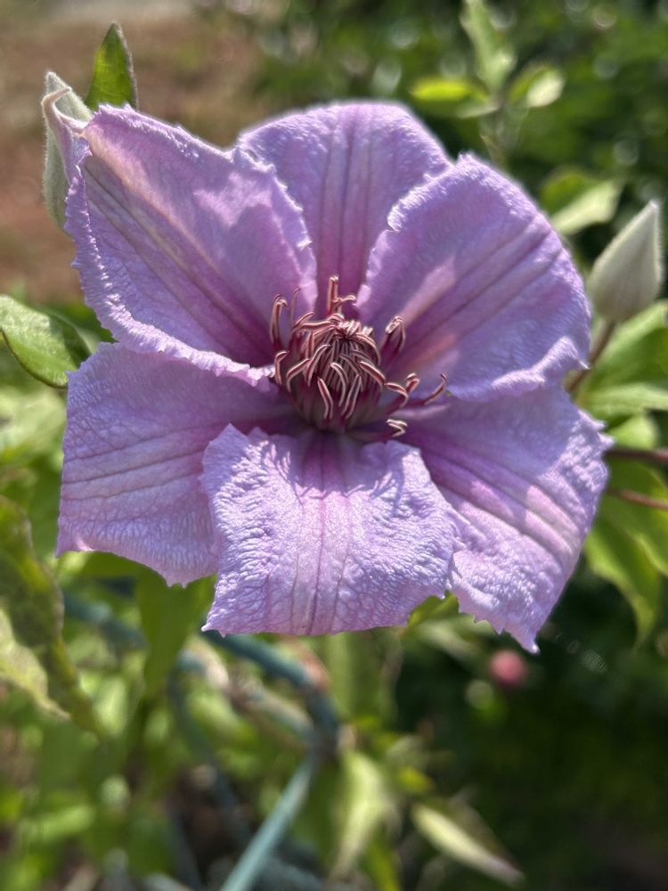 ピンク色の砂糖菓子のような優しい感じの質感のクレマチスが咲いてきました♪