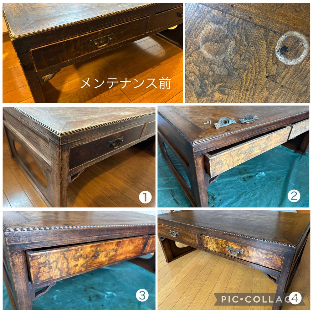 実家から古い黒ずんだ文机を引き取って、自分でメンテナンスしました✨