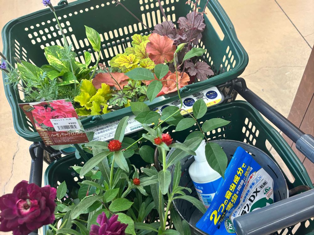 ポトス、ストロベリーフィズ、松葉牡丹、ラベンダー、ヒューケラ5種類、薔薇【バーガンディーアイスバーグ】