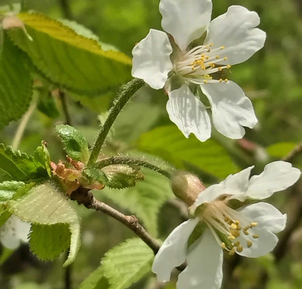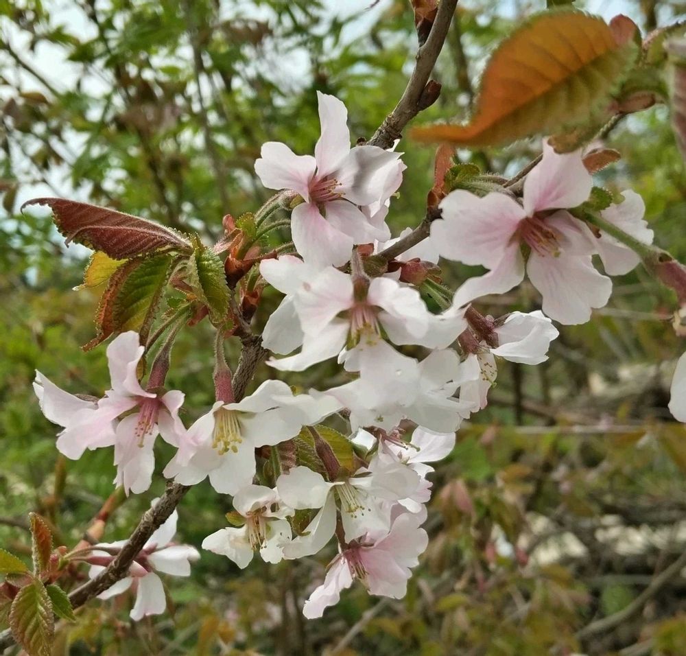 近くには八重桜も咲いていましたが、これはヤマザクラでしょうか。(①②③)