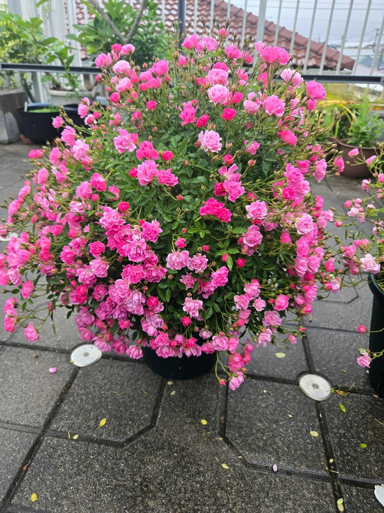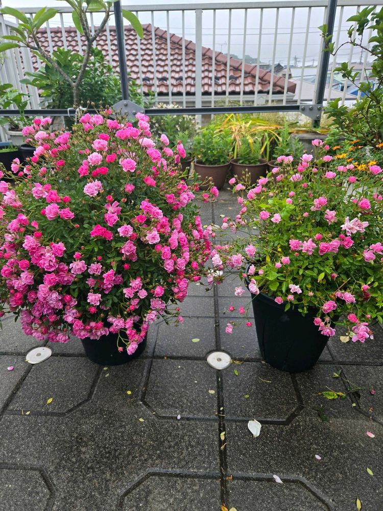 ふた鉢ある、極小ミニ薔薇のほほえみが沢山咲いてきました。
