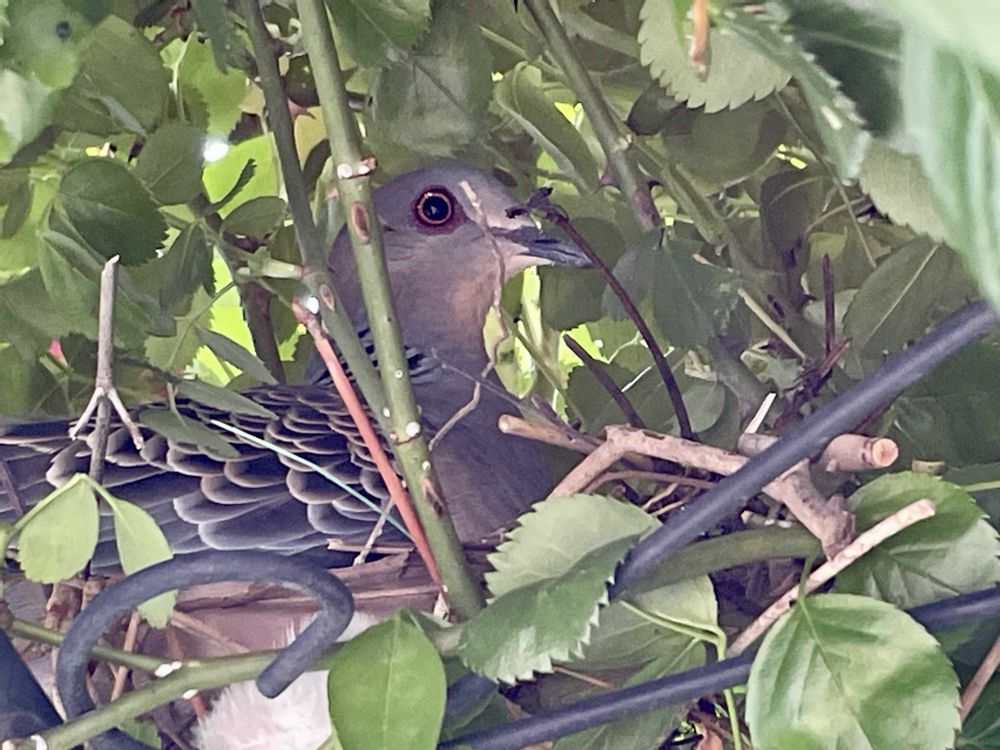 アーチの下に、小枝がよく落ちてるな〜って思ってたんですよね。何気に下から見上げたら、まん丸の目ん玉と目が合っちゃって😱💦こゎ〜!!いつ巣立つのかな〜