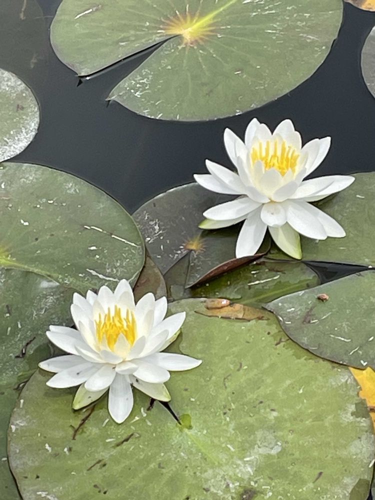 雨の日に睡蓮🪷が美しいですね〜白いお花達も🤍🤍🤍😍👍