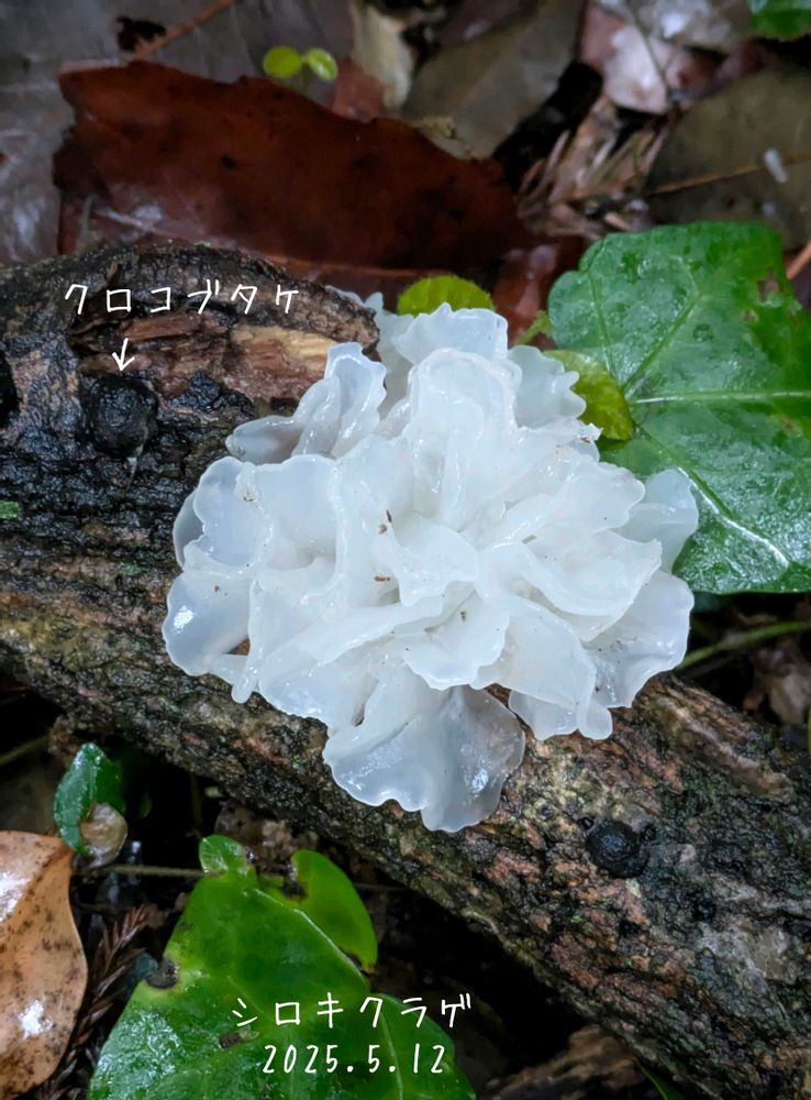 そして気になったのが~シロキクラゲのすぐ近くに寄り添って写っている黒色のキノコ‥🍄🟫👀🍄🟫!!